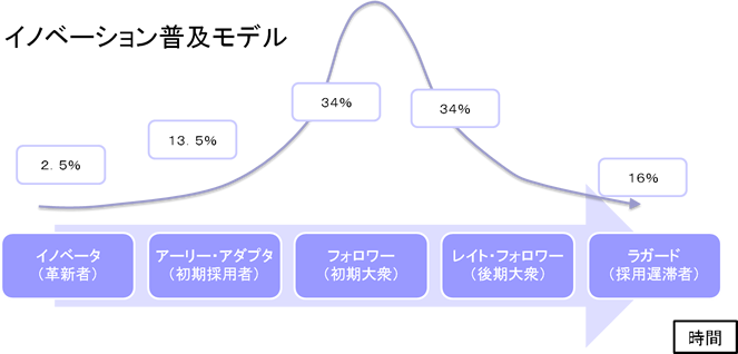 はじめは、イノベータが買ってくれて(2.5%)・・・となり、
