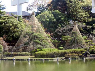 2時間くらい歩いて千葉公園です。もう冬の風物詩雪吊りが作られていました。