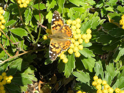 イソギクに来ているヒメアカタテハの写真です。アカタテハと良く似ていますので、