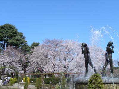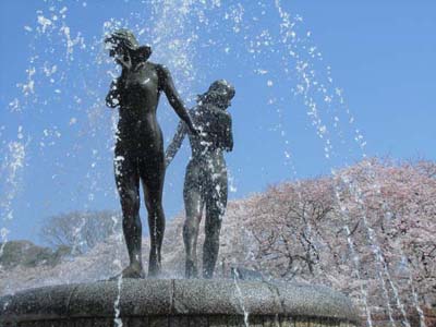 青空の青色サクラのピンク色裸婦像のピント、どれをとっても1級品です。