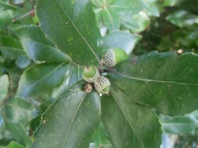 この写真はウバメガシのドングリの写真で、網目模様の殻斗が