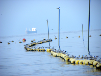 砂浜から直ぐの所のブイまでコアジサシが止まりに来ています。