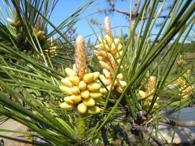 もう直ぐ雄花は全てなくなり、先端の雌花が当然ですが松かさになるようです。