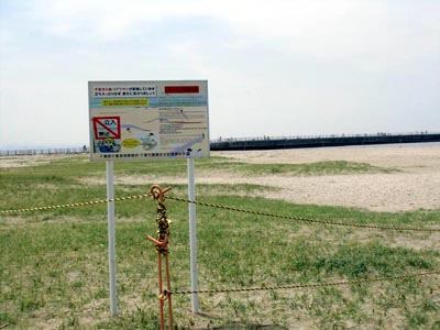 検見川浜では毎年コアジサシの営巣を管理するロープが張られています。