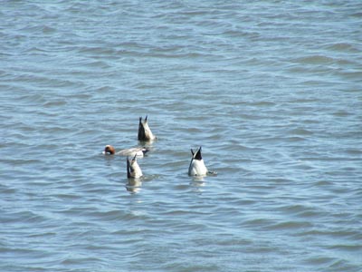 ヒドリガモの写真です。このカモはオナガガモと同じで、潜水出来ません。