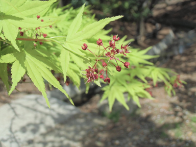 あんまり小さい花なので目に留まらないイロハモミジの花も咲いています。