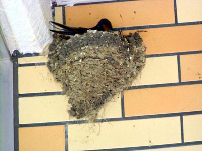 一番最初に写真の撮れたツバメ巣作り場所では巣作りが終わり、