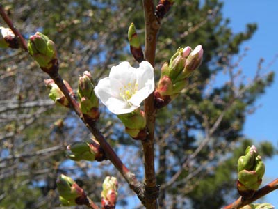 こここじま公園のサクラの開花は品種の分からない桜が1本23日に、