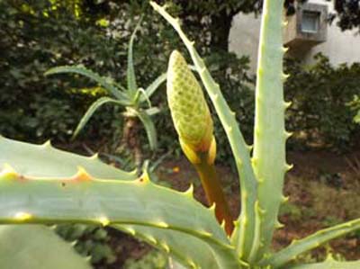 移植したなアロエより挿し木をしたものが早く蕾を付けました。