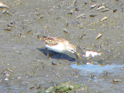 谷津干潟公園で撮ったとっても珍しい巻貝を食べてるトウネン。