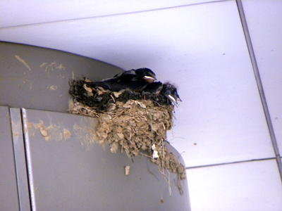 その後8月初めにつたや地下入り口のツバメの巣立ち間近と