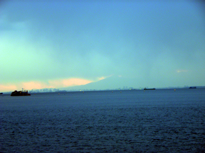 今日検見川浜での富士山の頂上は少し雲が有りました。
