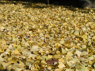 この写真清水公園の池の水に映ったモミジとイチョウの写真です。