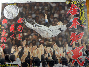 金本選手の胴上げの写真が1面で