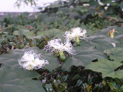 策や雨だったせいで、キカラスウリはそっくり返っていました。