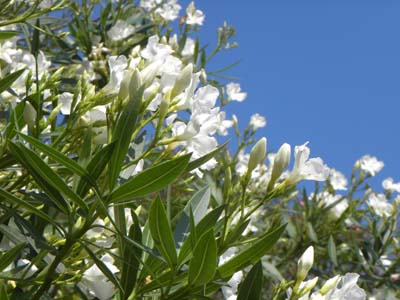 残り2枚はキョウチクトウの白い花。青空の青とキョウチクトウの白。