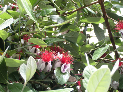 フェイジョアの花です。昔ホームセンターに勤めていた時扱った果樹苗の一種です。