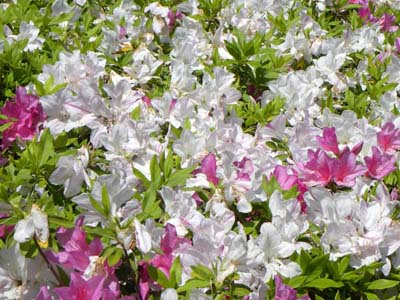 つつじの花が満開です。ミツバチが沢山来ています。ミツバチのレストランと言うそうです。