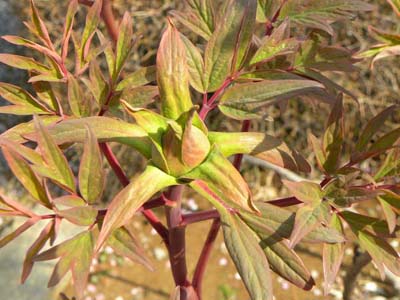 昭和の森の赤いチィんチャンの若芽、カタクリ、クロモジの花。