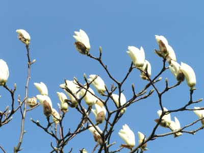今満開のハクモクレンの花は陳列されました。結局今月は8枚のNGで、陳列は12枚でした。