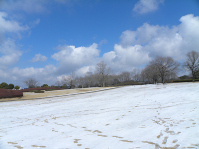 たまたま雪の積もった朝昭和の森へ行きました。雪景色の昭和の森、