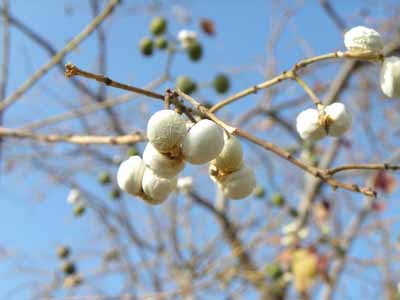 このマサキの実はもっと濃い色なのですが一寸白くなっています。
