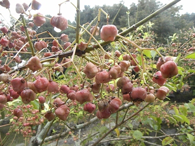 マユミの写真2枚に、昭和の森観察会で撮った、トキリマメの写真です。