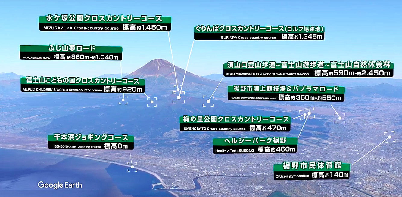 梅の里出口のパノラマロードから2.5kmで裾野市運動公園(標高338m)