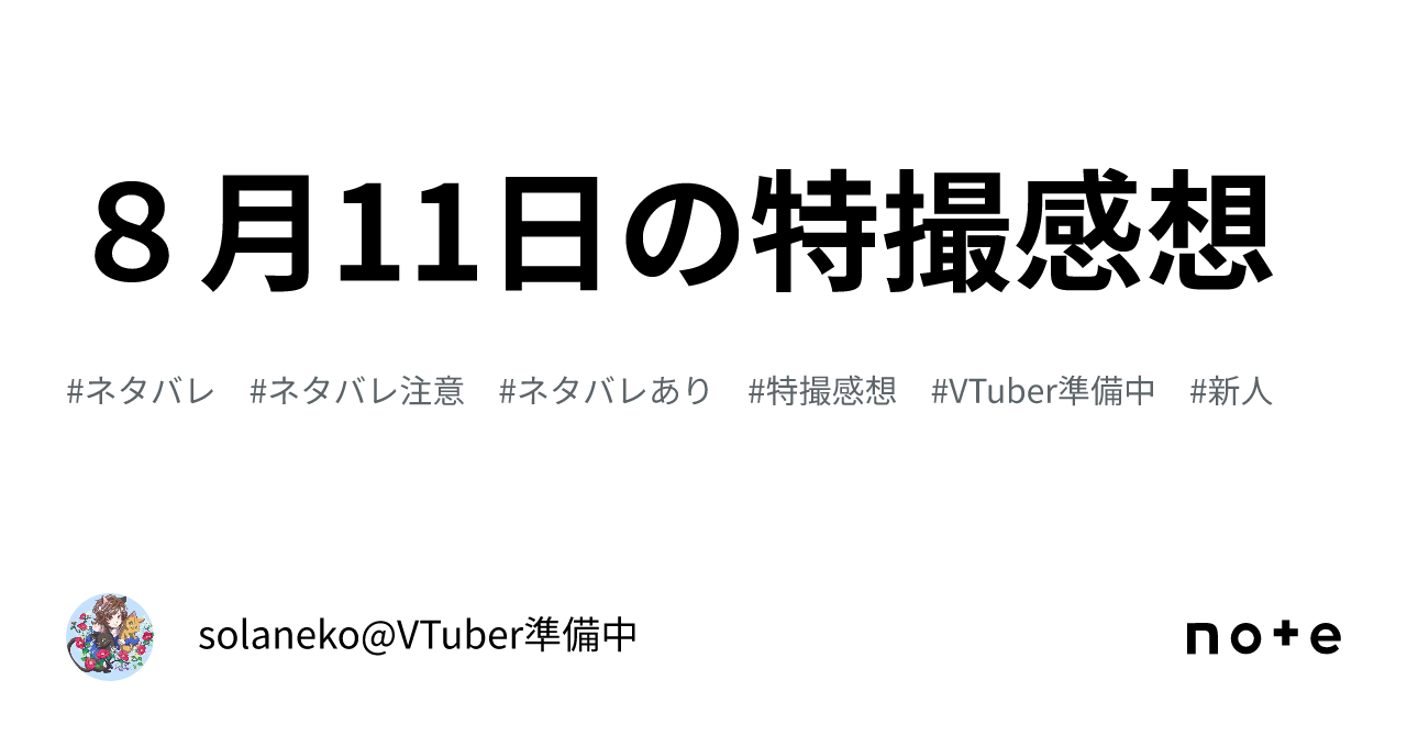 特撮感想 8月11日の特撮感想|solaneko🐈⬛🐈🐾@VTuber準備中今風邪をひいていてつらい状態ですが書いていきます 間に合わないもん もう少しでガッチャードが終わりです がんばります! この日特撮やっていたっけ?と不安になりながら書いていきます ネタバレあるのでネタバレ嫌な人は回れ右 仮面ライダーガッチャード 第48話 黄昏にさよならを 前回アトロポスのモデルがりんねちゃんだということが判明しました そし…note.comnoteの記事です日付け変わっちゃったけど書けました特撮感想!明日(今日)は書けないから8月11日分書けてよかったです来週は日火水と書けるようにがんばります!