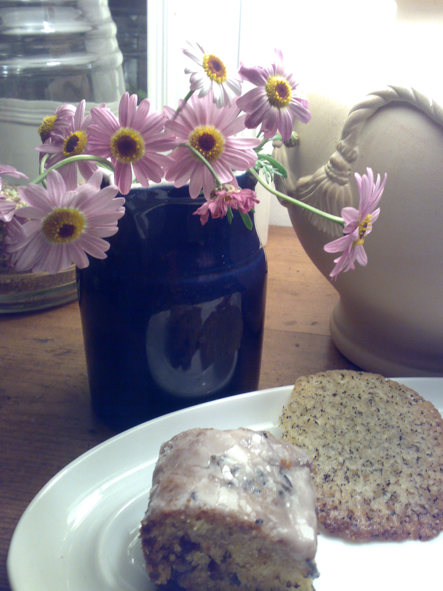 私は作るよりも食べるほうが好きなんですが(えへへ)、パトリスさんのご自宅でお菓子作りのデモンストレーション、続いてお茶タイムということで、10人限定の席を速攻ゲット(笑)。当日は、レシピは英語、お話は日本語。古い日本家屋なのにフランスの雰囲気ただようお台所で作り出されたのは、Earl Grey Tea Cookie アールグレイ入りの、焼くと薄~くなるパリパリクッキー、Biscotti ナッツとフルーツがいっぱいのビスコッティ、Red Fruits and Tea Brownie というしっとりケーキ、の3点。どれも、とっても美味しかった~なかでも私の一番のお気に入りは、3つめのブラウニー。ブラウニーと言っても、いわゆるチョコレートのではありません。フランスの紅茶ブランド、マリアージュフレールのMarco Polo を濃い目にいれたものに赤いフルーツ(この日はクランベリーとチェリー)を浸しておいて、そのフルーツを、しっとり目につくるスポンジ生地に混ぜ込んで焼き、残った紅茶は粉砂糖と混ぜてアイシング。