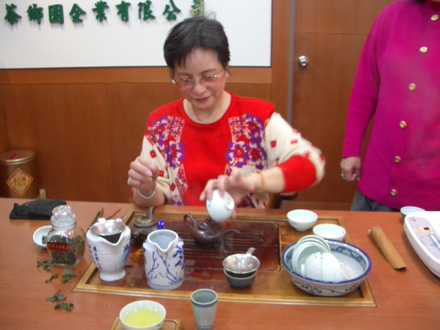 茶郷園長春路82号Tel: 02-2571-8763お茶を売るお店だけでなく、茶畑も持っている会社だそう。お店のマダムがいろいろ試飲させてくれました。阿里山というところでとれる烏龍茶を2種類。高山、とつくのは読んで字の如く、標高の高いところの茶葉だそうで、マダム曰く、「山高い、寒い、虫つかない、農薬いらない、だからイイ」と。なるほどね。茶葉の量は急須の5分の1。(中国茶用の小さいお急須ね)沸騰しているお湯で、一煎目は20秒くらいですぐ淹れる。すると葉が蒸されて広がる、香り出る。葉っぱがいいので、十煎くらいは大丈夫。3、4煎くらいで間を開けるなら、水をよく切って葉っぱを冷蔵庫に入れておき、また飲むときに葉だけ電子レンジでチンする。高級な茶葉はきれいな若い葉を使う、茎の部分がないので柔らかい、だから出し殻も食べられる。・・・だそう。たしかに、出し殻の葉っぱ、やわらかで美味しいです。