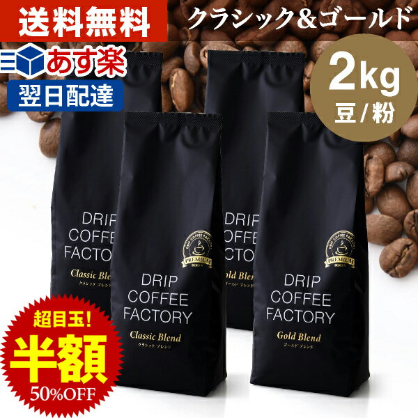 【店内買い回りでP最大10倍(要エントリー)】(~16日1:59)コーヒー豆 コーヒー 豆 粉 2kg ゴールド&クラシック ブレンド プレミアムシリーズ アソート ( 500g × 各2袋 合計4袋 ) コーヒー粉 珈琲 珈琲豆 あす楽 送料無料 ドリップコーヒーファクトリー楽天市場${EVENT_LABEL_01_TEXT}