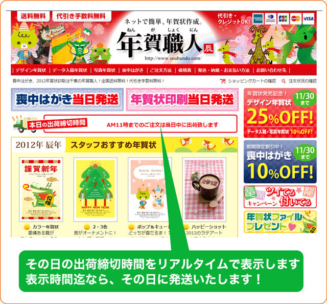 年賀職人では、お急ぎのお客様のために極力、当日出荷をめざしています。