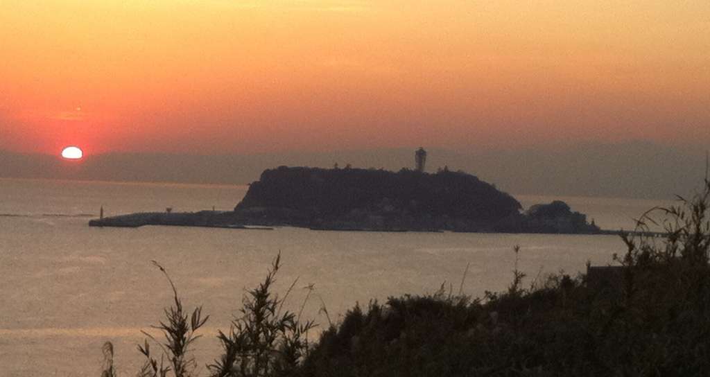 夜明け寸前の江ノ島。朝陽が出る直前の美しさは息をのみますね。
