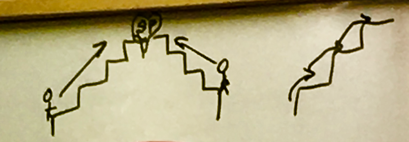 お互いが、それぞれ必要な試練・体験を通して1つひとつのステップを上がって準備が整って出会うのと、試練を残したまま先に出会って、ともに試練を乗り越えていくパターン。