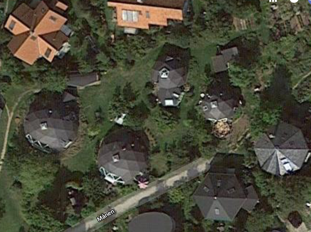 Googleマップの衛星写真でも見ても、やはり幾何学な建築物がいくつも目立ち、実際にDyssekilde villageの写真を探すと、いくつもドームハウスの写真が出てきます。