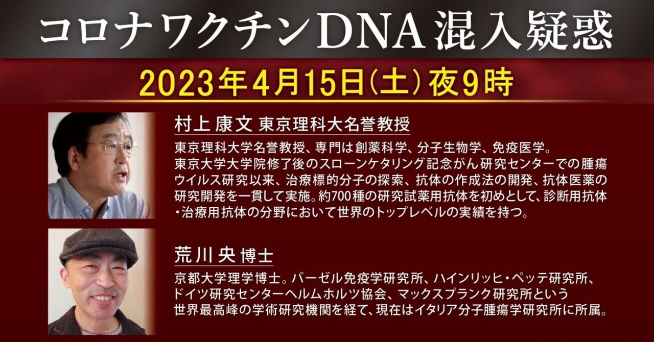 コロナワクチン最終章「終わりの始まり」。ゲノム解析をした研究者がDNAの混入を発見。しかも不可解すぎる内容。コロワク疑惑の最重要局面を語る両先生の緊急対談。拡散をお願いします!https://t.co/W33GnEsAZk