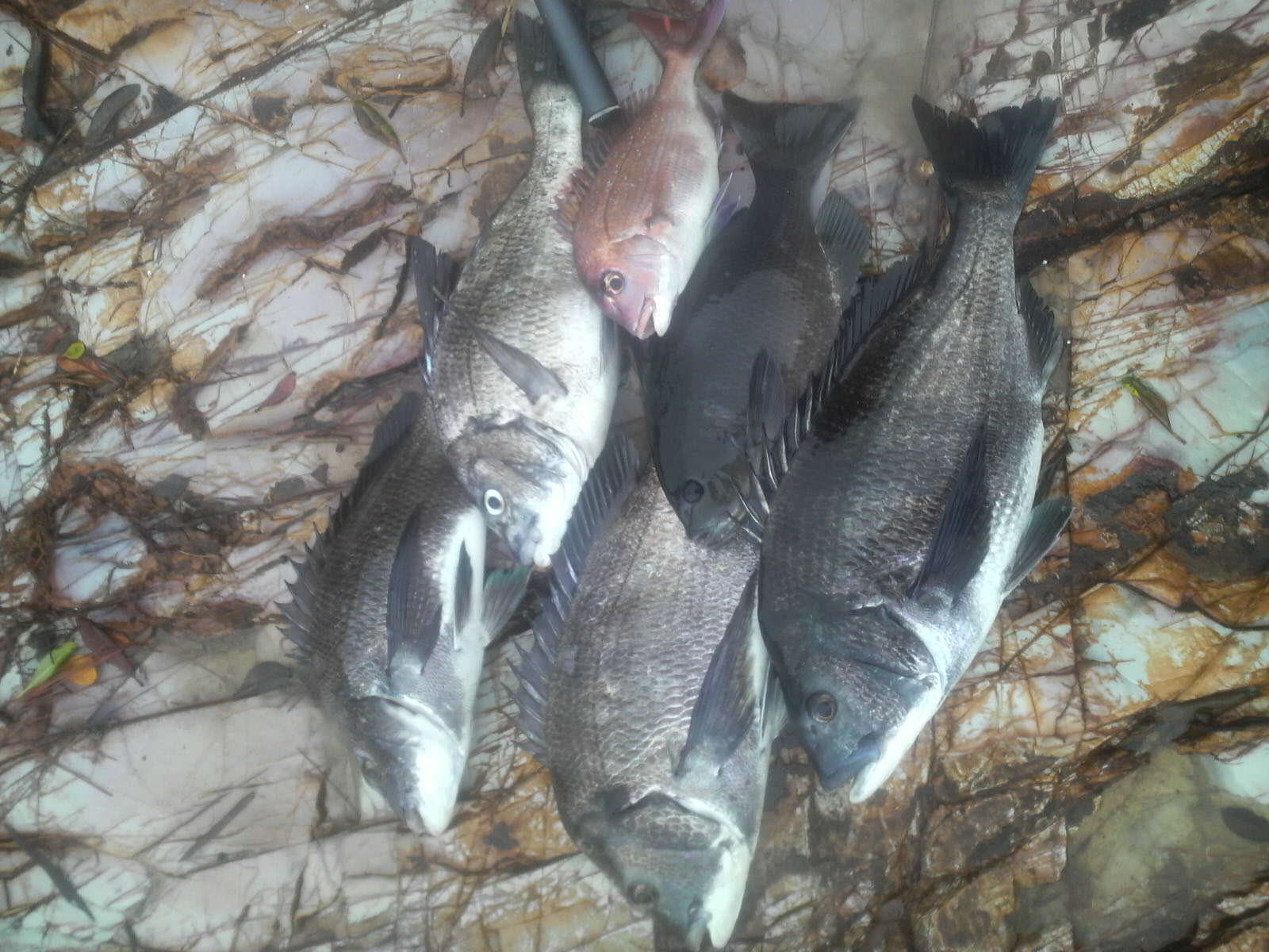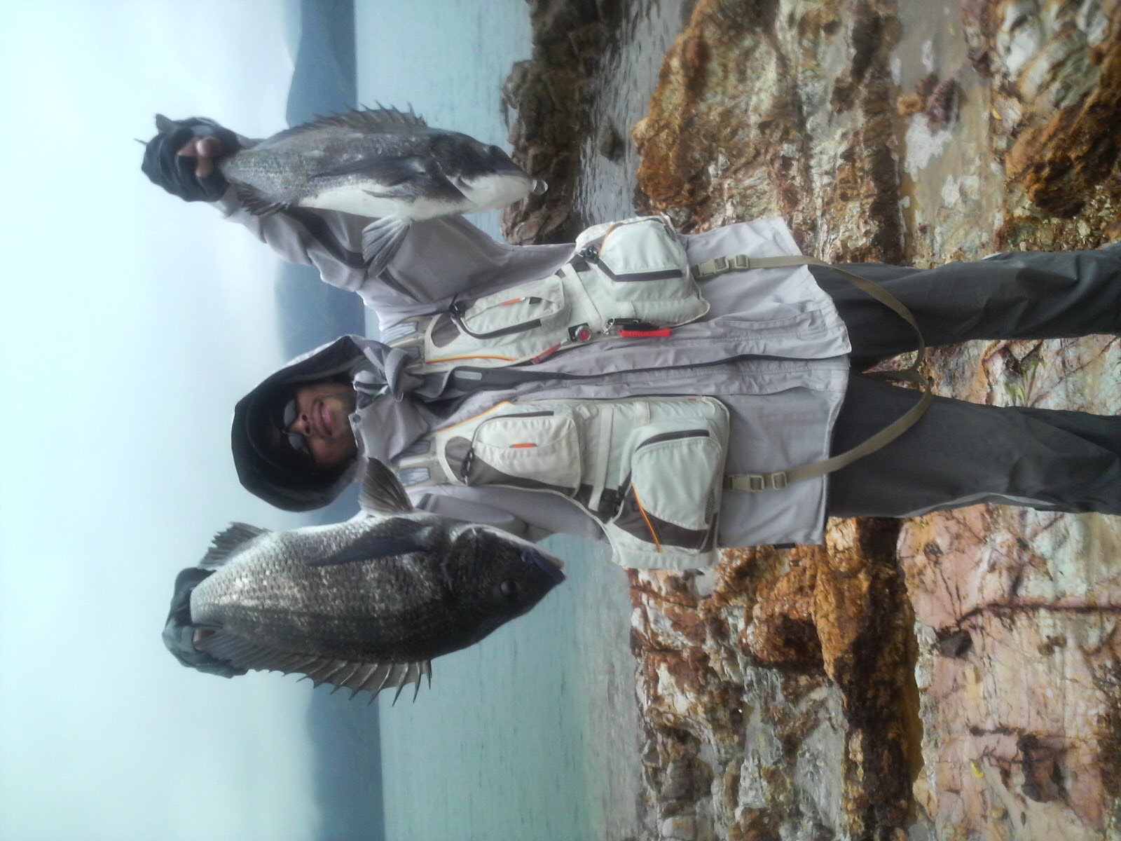 五島3日目今日も朝からザフィッシング!しか~し大雨…しかたないので開き直ってやることに。今日は多魚種の釣り。大ボラ、クロダイ、マダイ、口太メジナ、尾長メジナ、ガシラ、磯ベラ、アジ等エサ取りを合わせるとなかなかの魚種。クロダイはなんとか50UPを釣ることができました。明日は最後の半日釣行。自己記録の58センチをなんとかこしたいものです