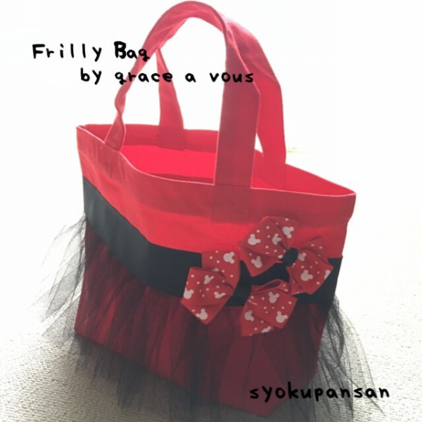 【フリリーバッグ】ミニーちゃん仕様 ミニーちゃんのリボンが使いたくて作ってみました チュールを無地にしたけどドットの方がもっとかわいくなったと思います Frilly Bag by grace a vous フリリーバッグはリボンの規定はなく好きなリボンが付けられます レッスン・オーダー受け付けています (料金同額) Frilly Bag by grace a vous¥4,500(レッスン料・材料費込)※デニムバッグ +¥300※レッスン・販売をご希望の方は、別途テキスト代・登録料¥3,500(全国一律価格)を後日本部校にお支払い頂きます。 気になる方はぜひご連絡ください Handmade Lesson→ Lesson schedule→上記以外の日程をご希望の方はお問い合わせください。Contact form→ 初めての方はご一読ください。Lesson policy→for with Children→ ↓↓リンクします