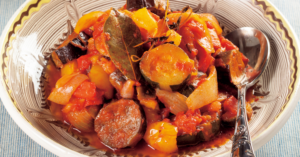 - 茄子とズッキーニは皮を縞剥きにし、1cm厚さくらいの輪切りにする。