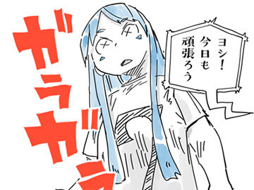 登場人物に「アルファさん」と言う、水色のロングヘアで、目が α(アルファ)の形をした、ちょっと能天気な少女がいる。