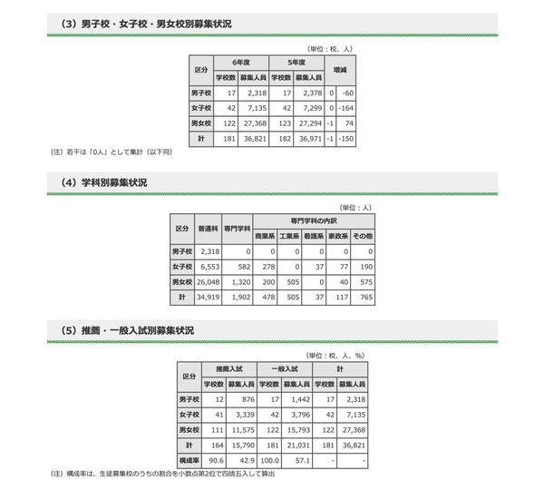 全日制課程の募集状況の内訳は