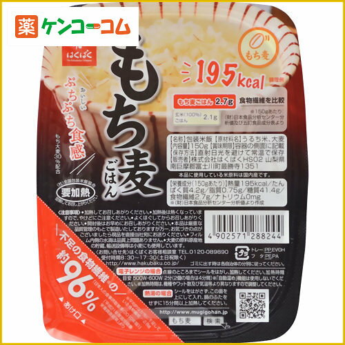 もち麦;195カロリー(150gあたり)、もち大麦30%配合、はくばくの製品 : うるち米、大麦
