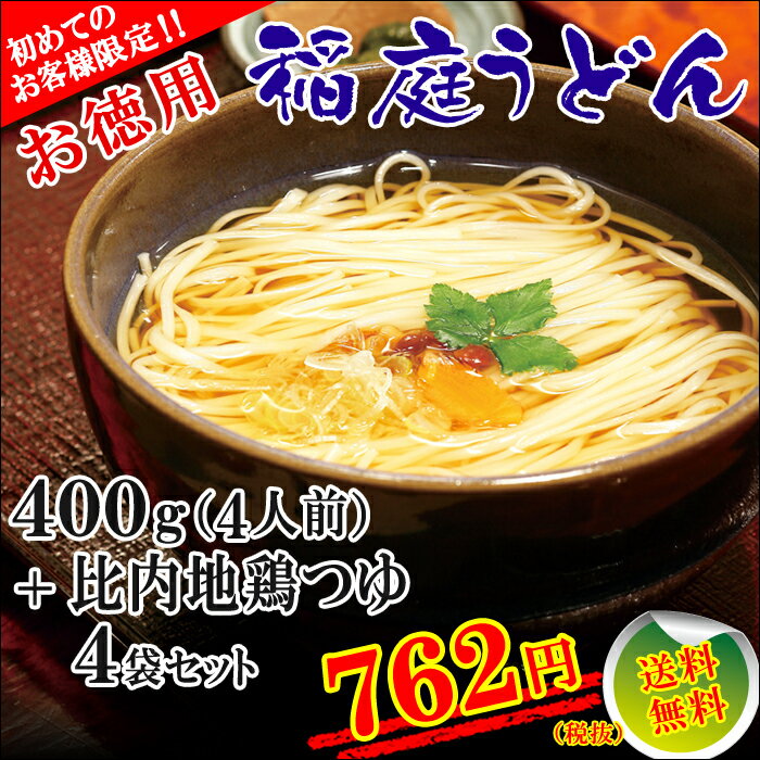 ☆無限堂☆稲庭うどん切れ端麺お徳用400g比内地鶏つゆ付(4人前)【送料無料・お徳用・訳あり・...