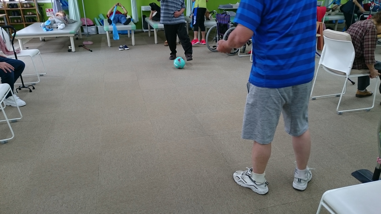立位でのボールを蹴る動作(バランストレーニング)