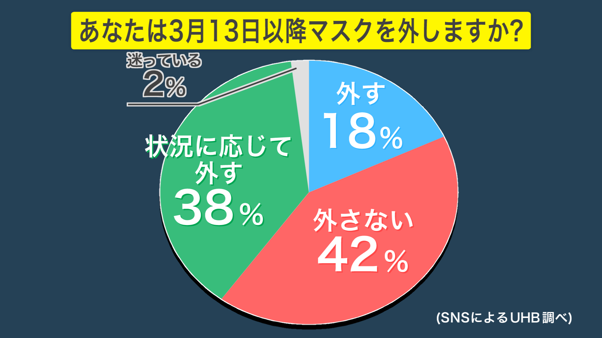 マスク外す? 外さない? 3月13日からマスク着用「個人の判断」に…早くも”外してOK”の業態も登場 - 北海道ニュースUHB TimeLine | Yahoo! JAPANマスクの着用が3月13日から「個人の判断」になりますが、一部では早くも個人の判断に切り替える動きも出ています。 井戸 和也 記者:「屋外から屋内に変わったからでしょうか。チカホではマスクを外している人はほとんど見られません」 マスクを外さない派:「外す必要がないかなと思っています。つけてるメリットの方が多いかな」 マスクを外さない…video.yahoo.co.jp