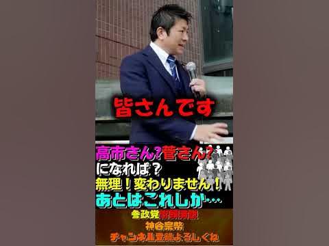 高市さん?菅さん?になれば?無理!変わりません!【神谷宗幣】#参政党 #神谷宗幣 #政治 #街頭演説 #総理 #高市早苗 #菅義偉 #国民運動 2月19日は鹿児島の街頭演説から誰が総理になっても日本は変わりません!!あとはこれしかないんです!!動画引用元 https://www.youtube.com/live/bZjwRqu5MOA?feature=share参政党・応...youtube.com