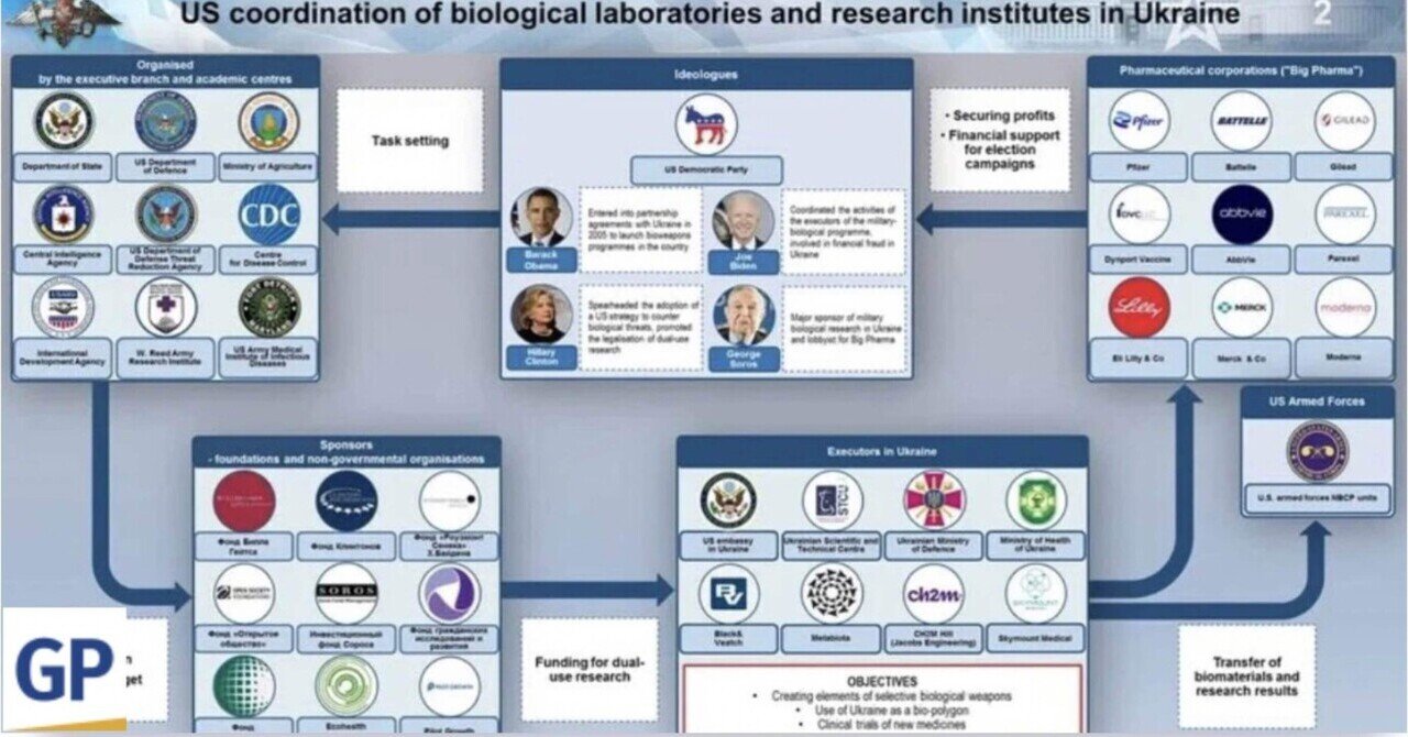 ロシア下院の報告書: 数千人のウクライナ人が米国の生物兵器研究のモルモットにされ、少なくとも20人が死亡した|Spiderman886|noteロシア下院の報告書: 数千人のウクライナ人が米国の生物兵器研究のモルモットにされ、少なくとも20人が死亡した リチャード・アベルソン著 2023年4月13日 午前7時15分 出典 ロシア国防総省 ウクライナにおける米国の生物学研究所の活動に関するロシア議会の調査によると、少なくとも4000人のウクライナ人が米国の生物兵器実験のモルモットにされ、そのうち少…note.com