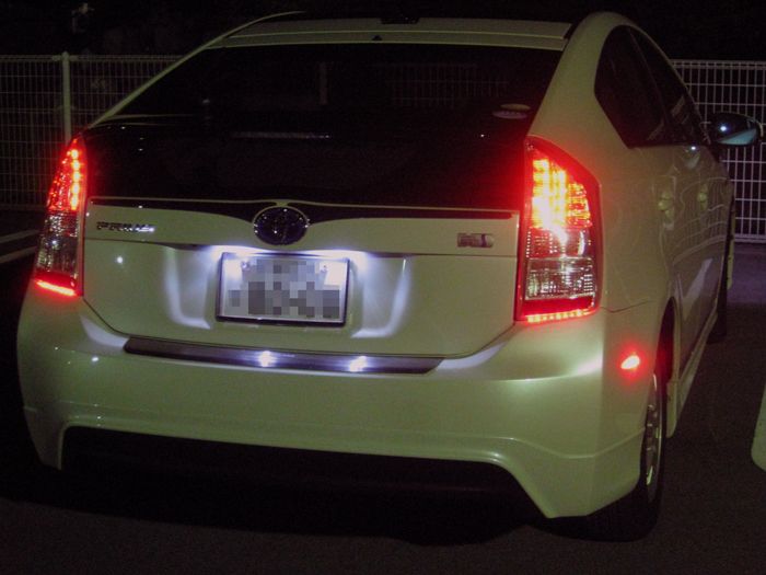 プリウス(30系)テールテールランプの下部に赤いLEDをインストールした写真です。 スモールと連動しなんとも言えない輝きを放つ! これは「側面発光のラインテープLED」だ。 商品はコレ! 早速、友人の車屋さんに相談してみよっと