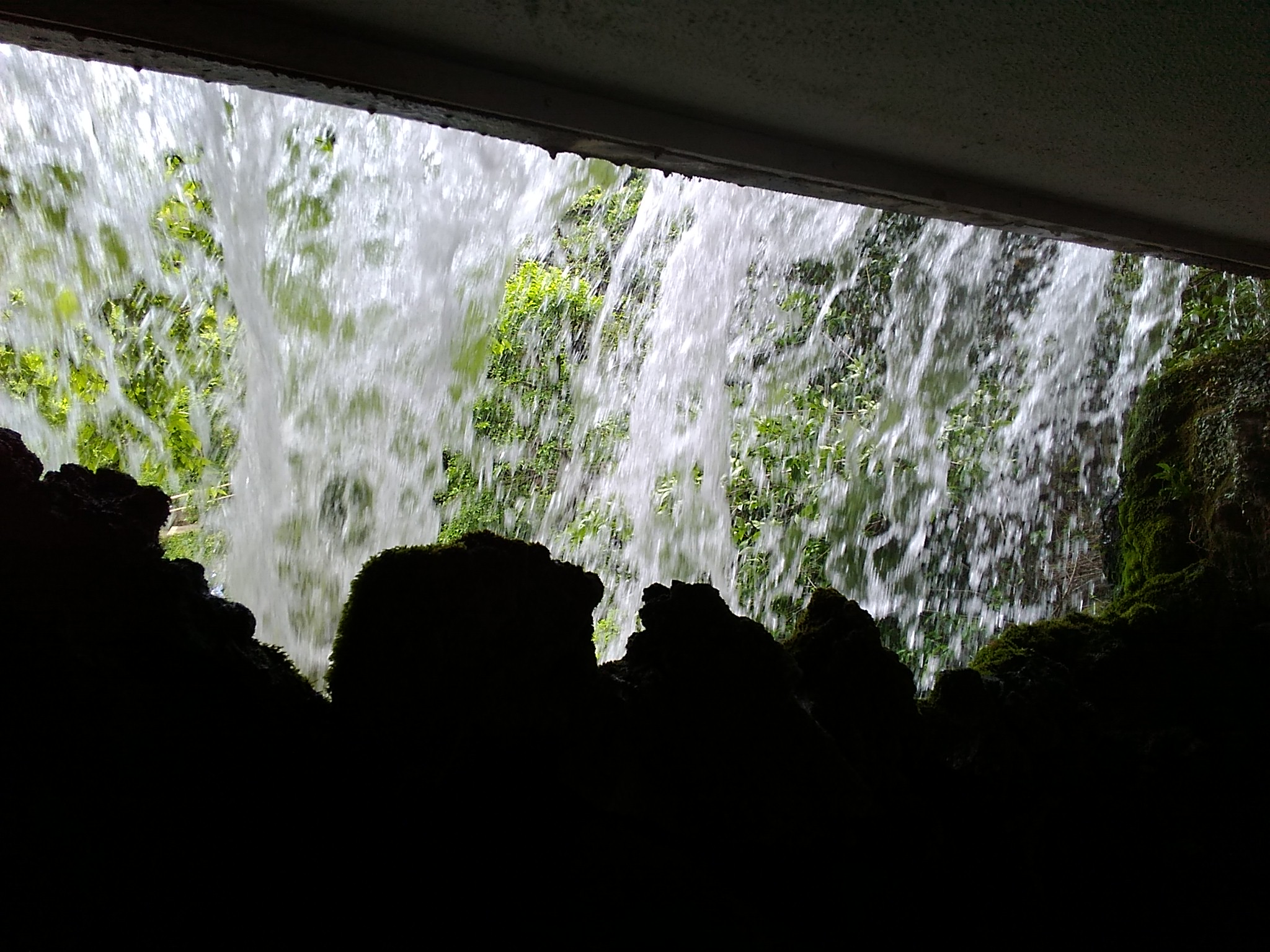 平らな壁面(水落石)を均等に伝わせ、布をさらすように落とす。